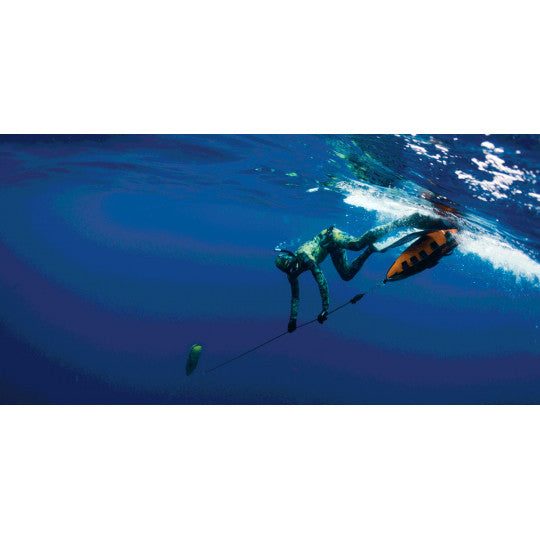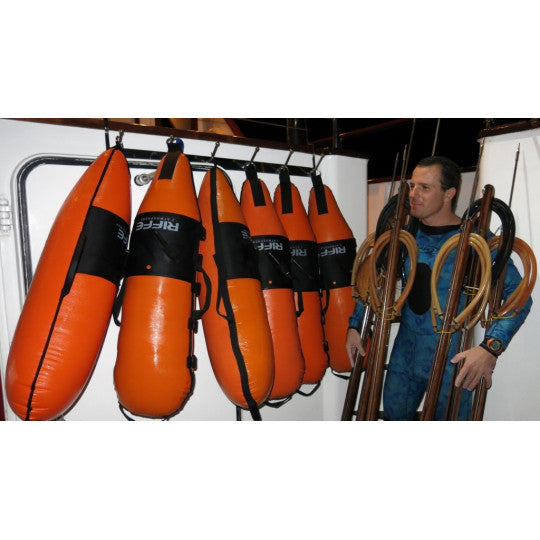 Bóia específica para ser presa ao arpão ou a arma na pesca de grandes peixes de fundo ou de