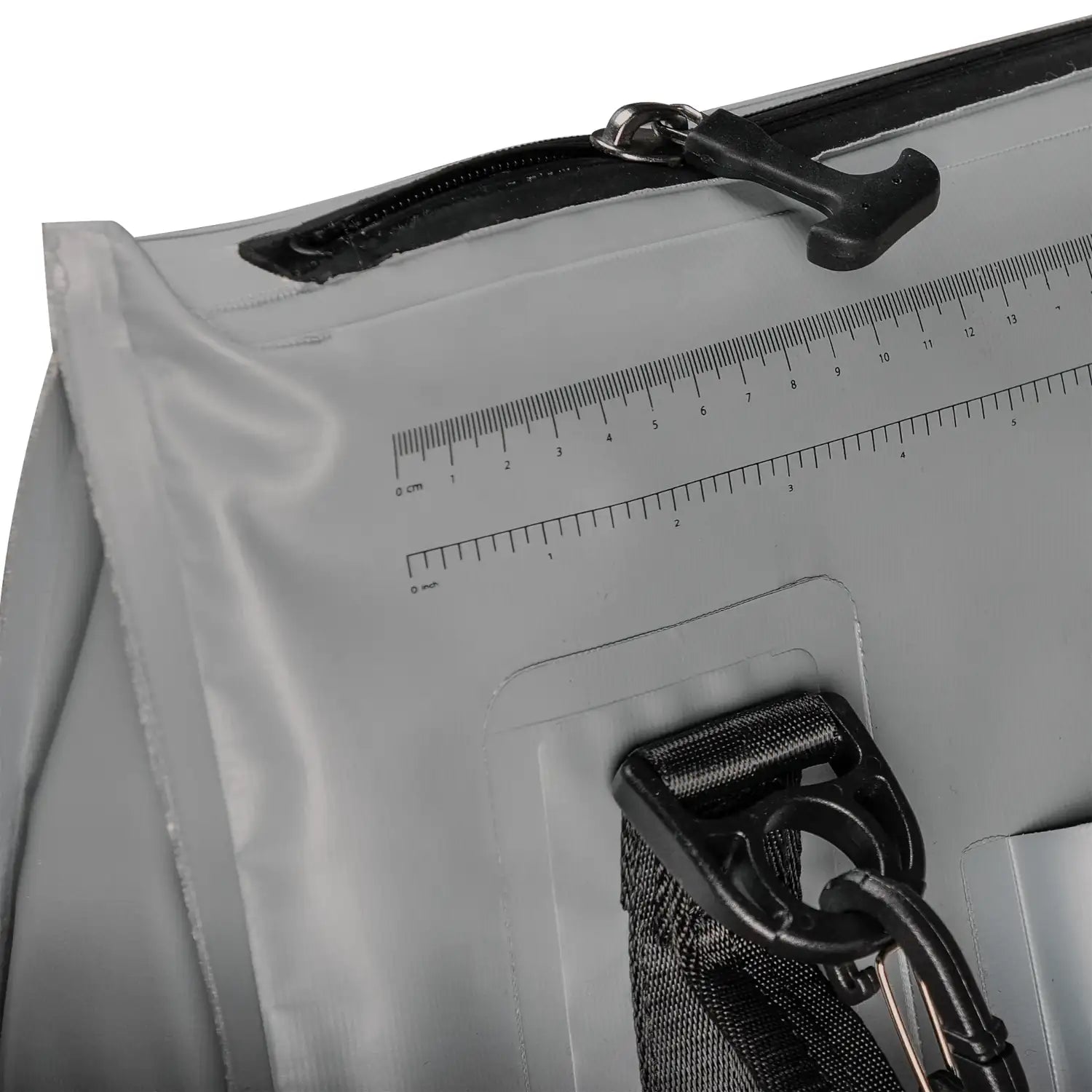 O recipiente térmico/à prova d'água foi projetado para garantir o armazenamento ideal da pesca em condições climáticas extremas ou de calor intenso. Fabricado em material de alta resistência, eletrossoldado e resistente a rasgos, oferece durabilidade superior e proteção confiável. Internamente, possui um revestimento adicional com cavidade isolante que permite que o gelo permaneça no lugar por um longo período, garantindo assim o armazenamento ideal da pesca. O formato foi especialmente projetado para garantir estabilidade e posicionamento vertical em qualquer meio de transporte. O fecho de zíper à prova d'água e a válvula de drenagem garantem uma vedação hermética e protegem o conteúdo de agentes externos. Equipado com alça de ombro, pegas e argolas para fixação durante o transporte, oferece uma grande versatilidade de utilização. Além disso, a presença de uma escala graduada externa em cm/polegadas facilita a medição da captura diretamente no recipiente.