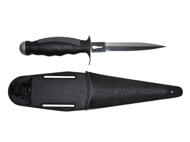 Faca com lâmina em formato de adaga, feita de aço inoxidável 420B, com dispositivo de liberação do cabo, 13,5 cm de comprimento.