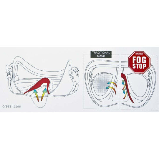 Uma membrana patenteada que circunda o bolso do nariz interno que atua como uma barreira e atrapalha qualquer umidade escapando do nariz do mergulhador involuntariamente ao respirar pela boca.