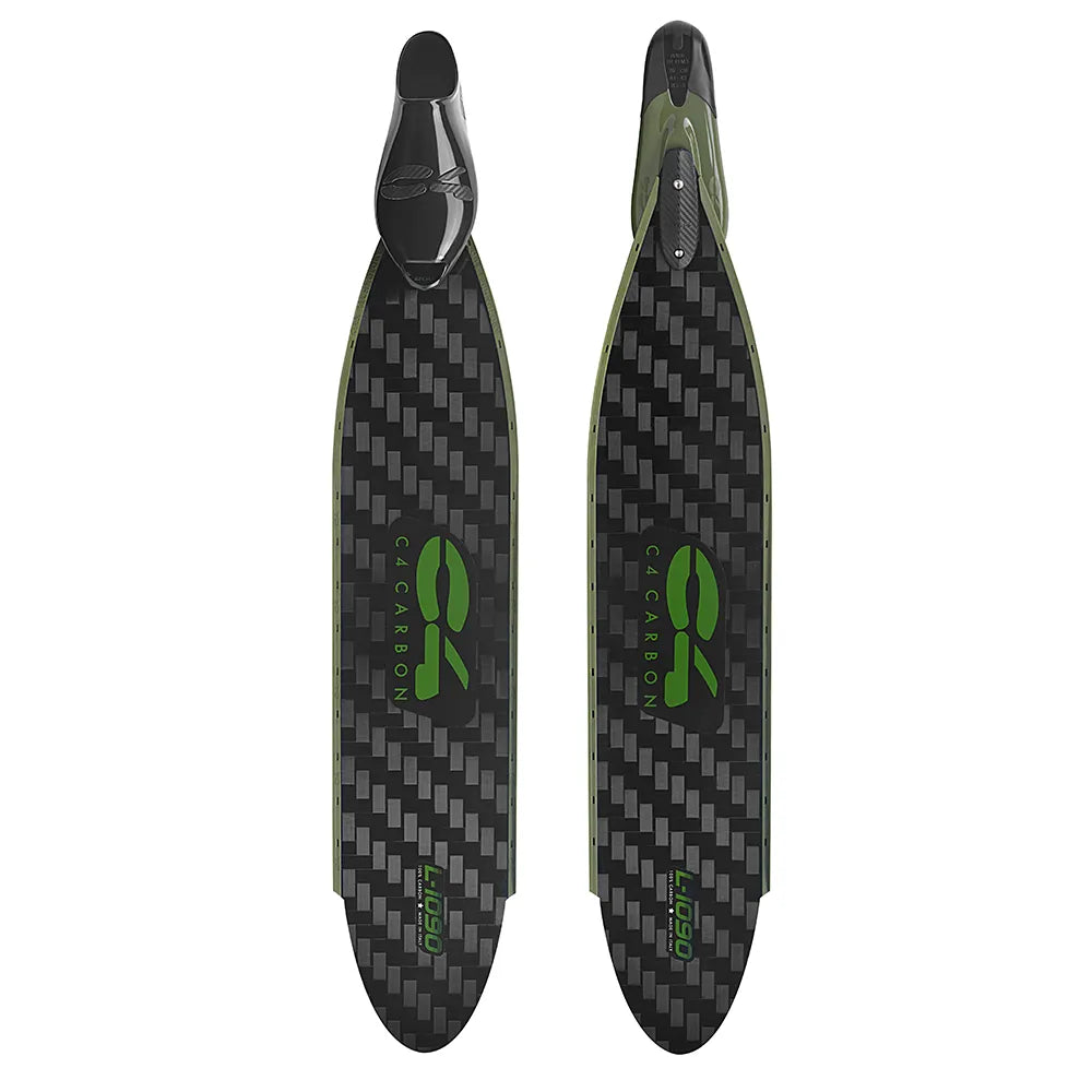 Nadadeiras específicas para pesca em águas profundas, com aba hidrodinâmica antiturbulência. Possuem lâminas em três durezas diferentes: 25 (macia), 30 (média) e 35 (médio-dura). O acabamento das lâminas é em fibra de carbono com detalhes em verde militar. As nadadeiras são combinadas com sapatos de cabedal preto e sola verde militar. Os trilhos de água também são verde militar.